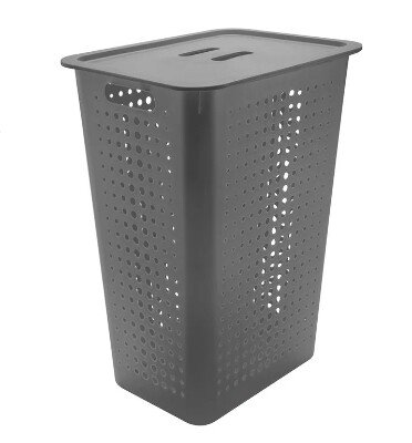 CESTO CALADO P/ROPA RECT.47L C/TAPA GRIS BLANCO 64820/10